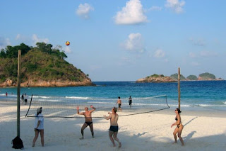 itu, ayah bercadang untuk mandi- manda di pulau sahaja sambil bermain bola air.